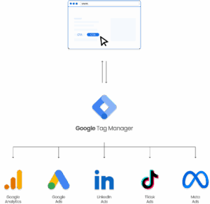 Installation de Google Analytics 4 + du Pixel Meta + 1 autre balise au choix ou rapatriement de vos balises de suivi existantes dans GTM