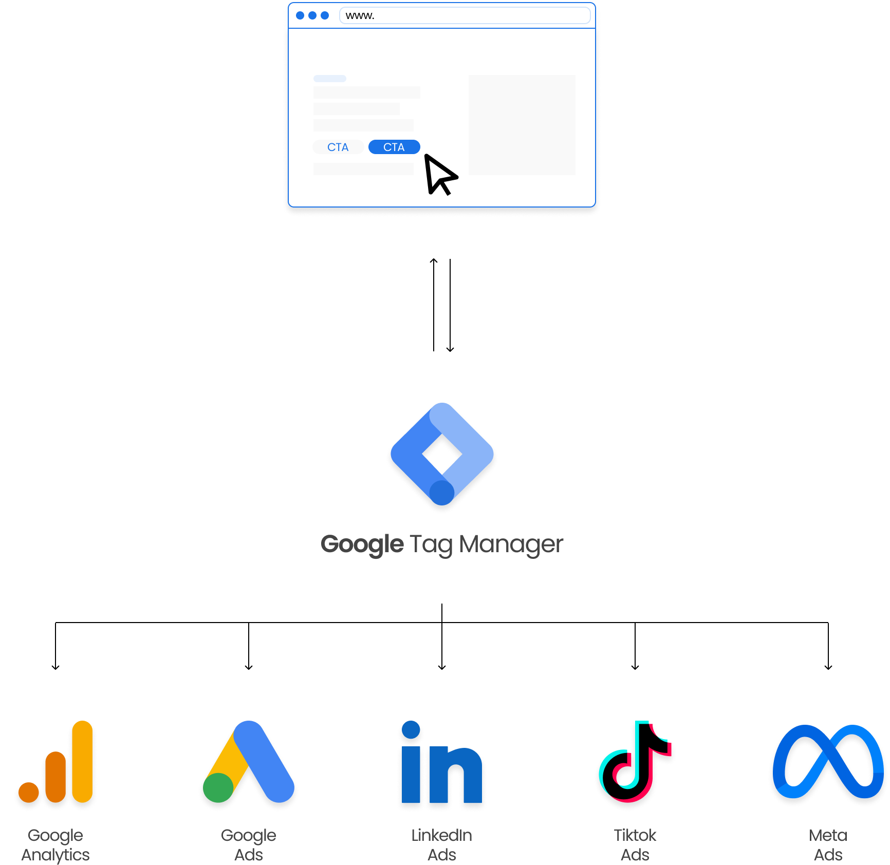 -> Toutes vos balises de tracking fonctionnelles, organisées, regroupées au même endroit (dans un container Google Tag Manager) pour une maintenance et une évolutivité maximum.