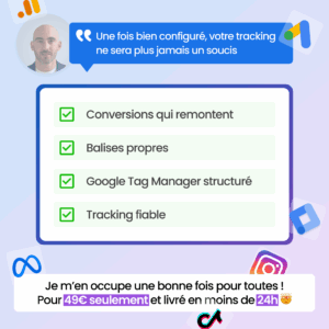 Je mets en place votre tracking et vos conversions une bonne fois pour toutes, en moins de 24h.